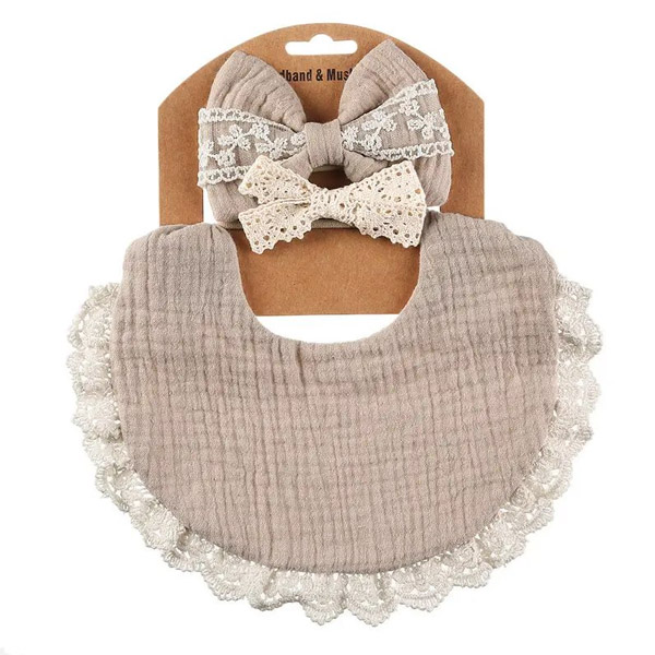 Babero de muselina con 2 cintillos color Arena – Niu baby