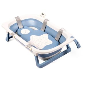 Tina de Baño Plegable para Bebes con Hamaca y termometro Azul