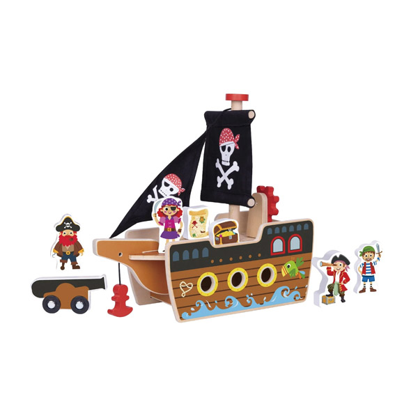 Para los pequeños fanáticos de los piratas, el Barco Pirata de Madera es un paquete de diversión. Está fabricado con madera de buena calidad y resistente.