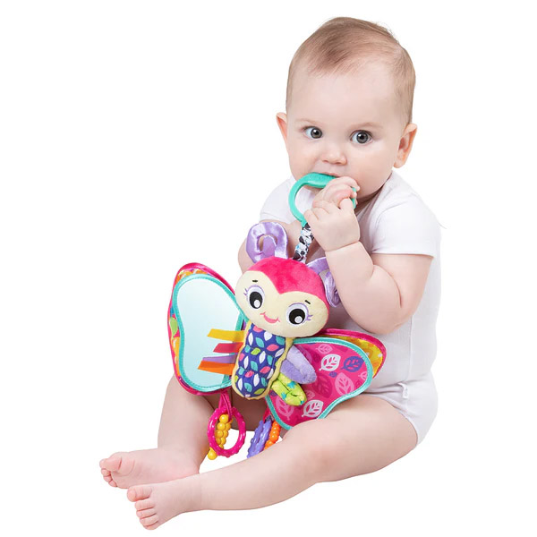 Descubre a Blossom Butterfly, la compañera de juegos perfecta para tu pequeño. Con un gran espejo para que se descubra y alas arrugadas para la diversión sensorial, Blossom Butterfly te cautivará. Sus estampados en blanco y negro y sus vibrantes diseños de alto contraste estimulan el seguimiento visual, mientras que los anillos clic-clac y los anillos fáciles de agarrar estimulan las habilidades auditivas y motoras. Las cintas táctiles y las alas con forma de peekaboo invitan a la exploración, y las suaves presillas de tela acolchadas garantizan un tirón seguro. Las telas de satén sedoso y la suave barriga de terciopelo proporcionan una experiencia lujosa y acogedora. Los diversos anillos texturizados favorecen el desarrollo sensorial, y su carita suave hace que acurrucarse sea aún más acogedor. El clip en C fácil de usar permite la diversión en cualquier lugar, fijándose fácilmente a asientos de coche, moisés y cochecitos. ¡Blossom Butterfly convierte cada momento en una encantadora aventura!