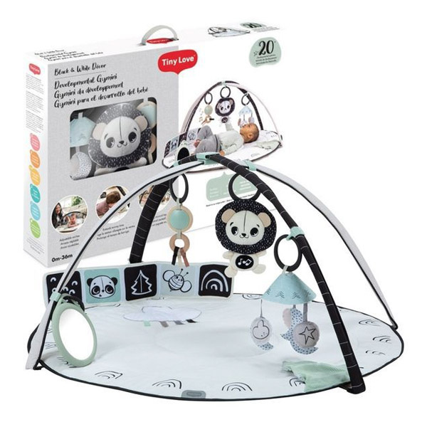 El Gimnasio Negro y Blanco Gymini de Tiny Love transforma el tiempo de juego en una experiencia enriquecedora para tu bebé. Diseñado con un elegante contraste en blanco y negro, este gimnasio estimula el desarrollo visual de los más pequeños mientras fomenta sus sentidos, habilidades motoras y cognitivas a través de 20 actividades interactivas.