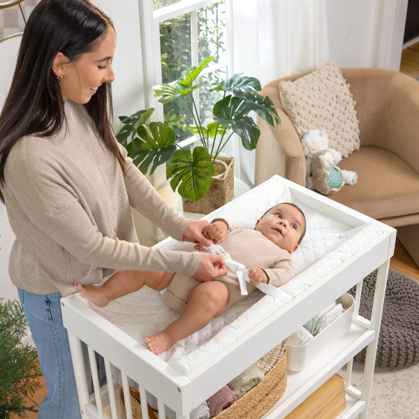 CÓMODO: cuenta con un cojín de hule espuma de doble capa en la parte superior que mantiene al bebé cómodo y a gusto durante el cambio de pañal.